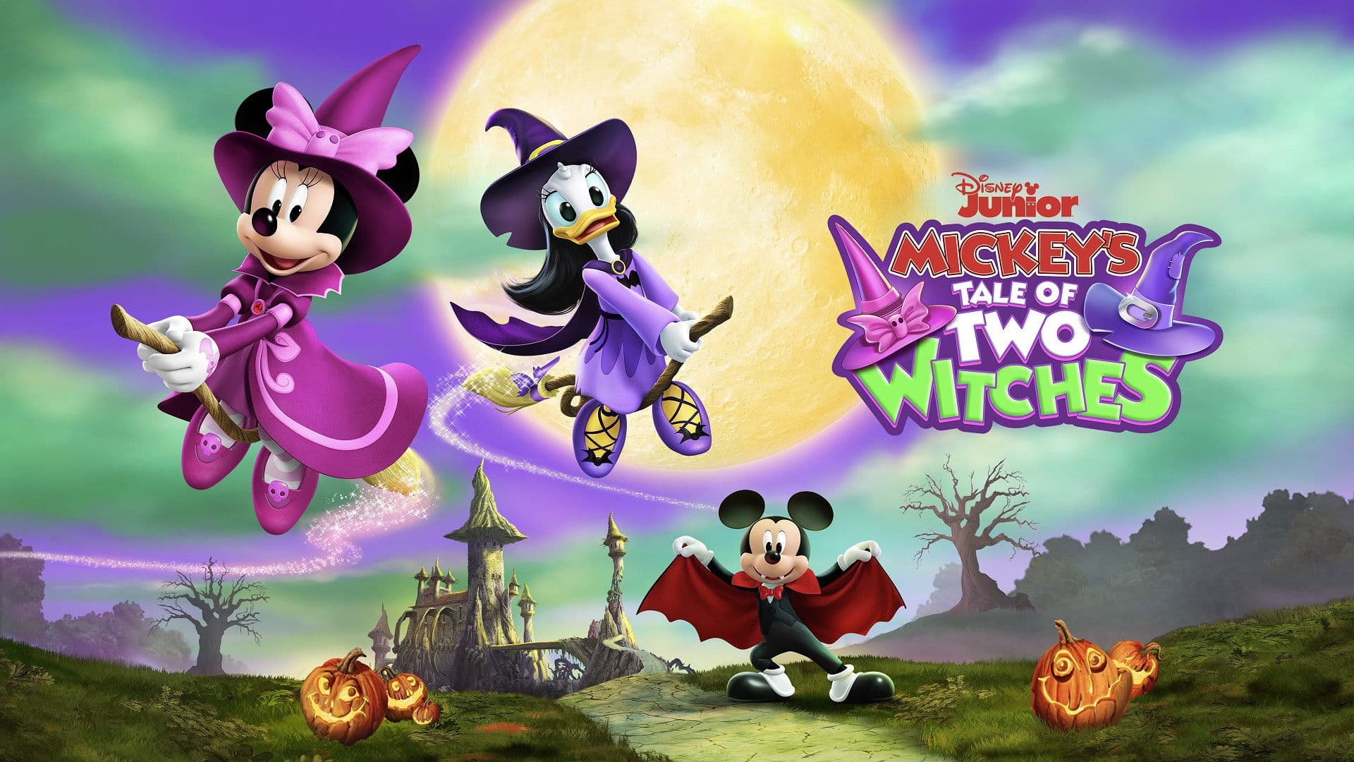 On Halloween, Mickey tells a tale of two witches-in-training, Minnie and Daisy, who must pass four tests to graduate from the With Academy in Happy Haunt Hills.